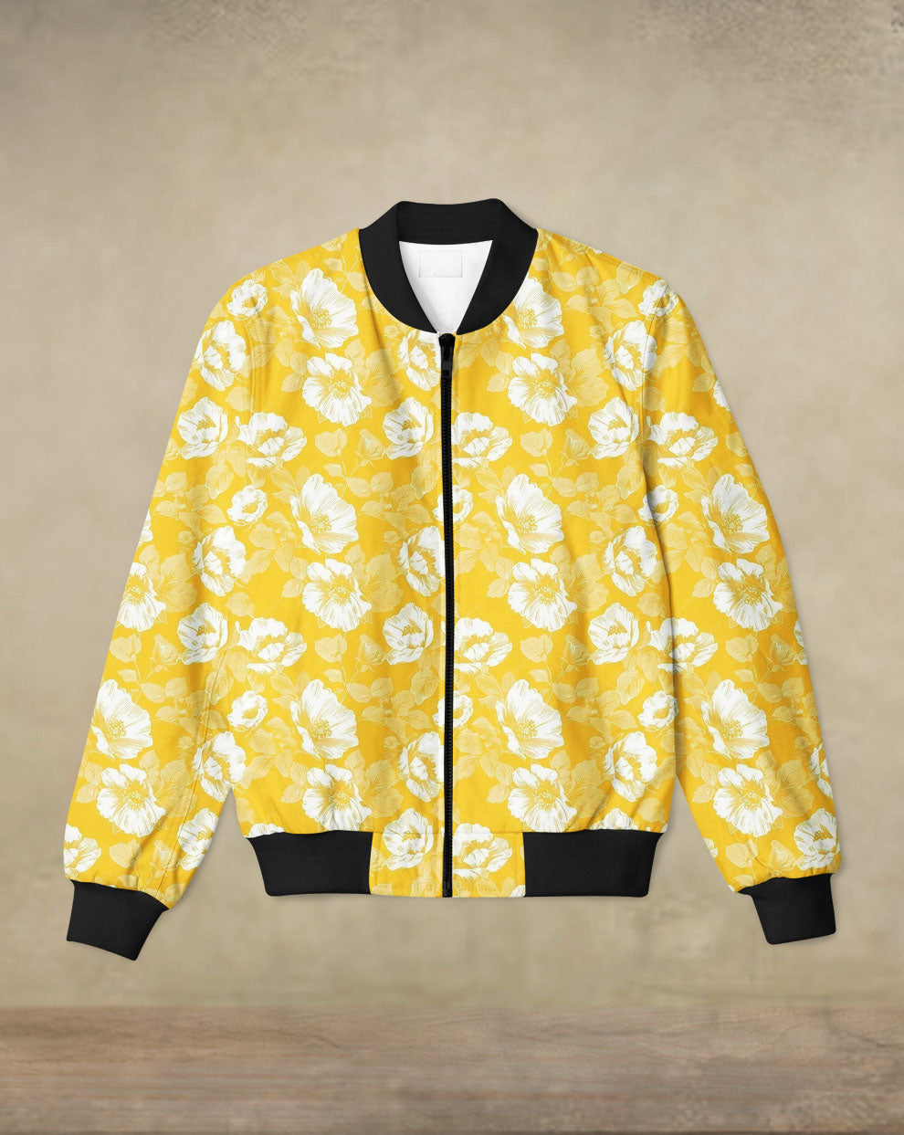 Floral Yellow Printed Bomber Jacket #BJ106